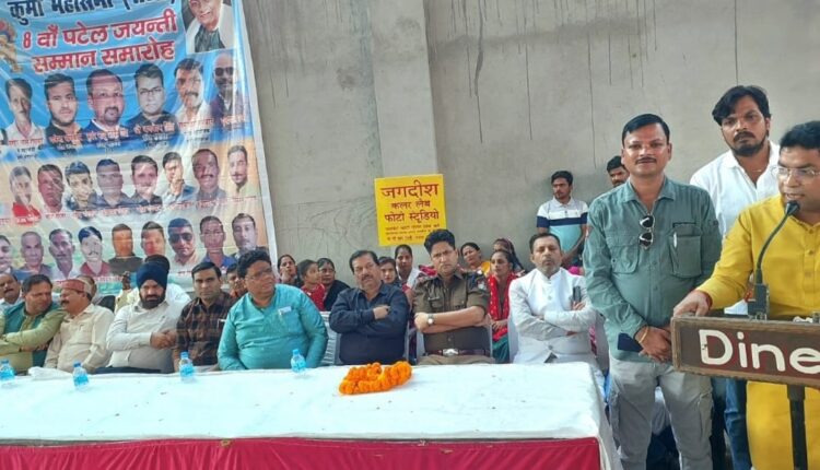 रूद्रपुर। लौह पुरूष सरदार बल्लभ भाई पटेल की जयंती के उपलक्ष्य में कुर्मी महासभा का आठवां पटेल जयंती सम्मान समारोह रविवार को ट्रांजिट कैम्प में आयोजित किया गया।सम्मान समारोह में एमए करीब एक हजार से अधिक लोगों ने भाग लिया।