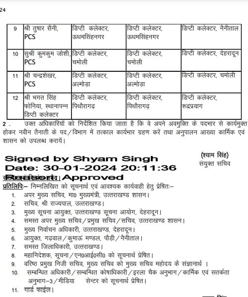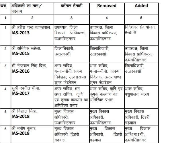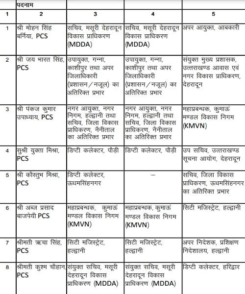 उत्तराखंड में बड़ा प्रशासनिक फेरबदल, कई IAS और PCS अधिकारियों के तबादले, यहां देखें लिस्ट उत्तराखंड By MEDIA GROUP On Jan 31, 2024 Share उत्तराखंड शासन ने मंगलवार को बड़ा प्रशासनिक फेरबदल किया। छह आईएएस और 12 पीसीएस अफसरों का तबादला कर दिया गया है। देर रात इसके आदेश जारी किए गए। जारी लिस्ट –