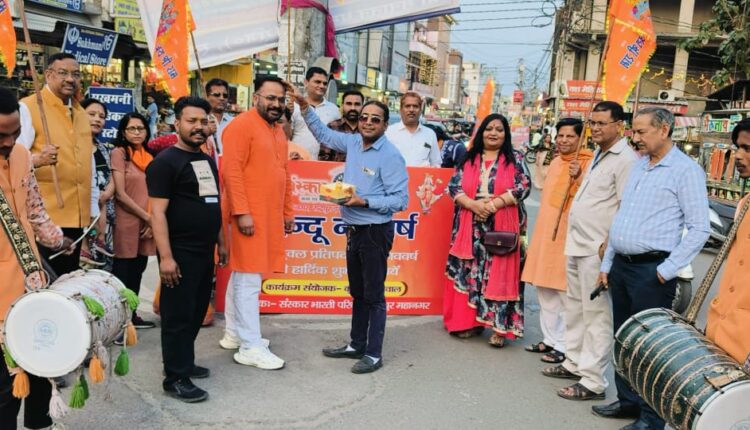रुद्रपुर। संस्कार भारती द्वारा हिंदू नव वर्ष चैत्र शुक्ल प्रतिपदा का कार्यक्रम आज रुद्रपुर में बहुत ही धूमधाम से ढोल नगाड़ों के साथ नाचते गाते मनाया गया। भगत सिंह चौक से लेकर बाटा चौक तक सभी दुकानदारों और रास्ते ने चलने वाले ,बाजार में सामान खरीदने वाले सभी प्रेमियों को हिंदू नव वर्ष की शुभकामनाएं दी, मिठाइयां बांटी और सबके माथे पर तिलक लगाकर अपने भारतीय नववर्ष को मनाने के लिए सबको प्रेरित किया।