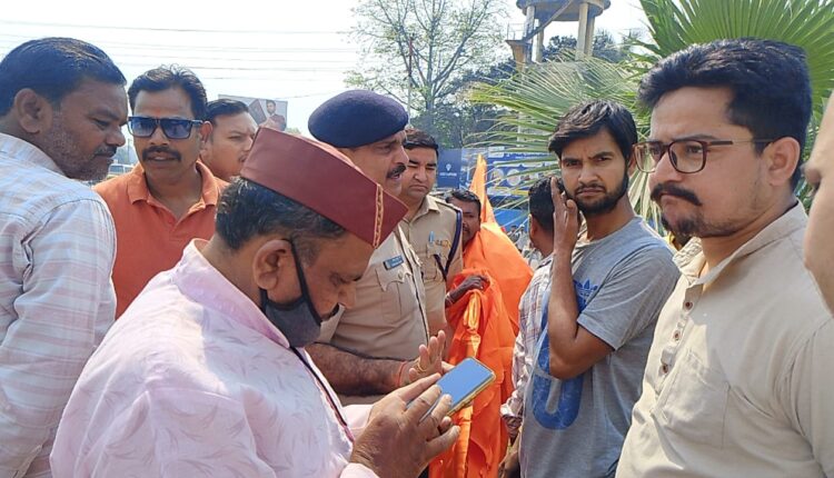 जानकारी के अनुसार गुरुवार हिंदूवादी और आरएसएस से जुड़े कार्यकर्ता डीडी चौक पहुंचे और चौराहे के बीच विशाल केसरिया झंडा लगाने की कोशिश करने लगी। जिसकी सूचना मिलते ही कोतवाल धीरेंद्र कुमार मय पुलिस बल के मौके पर पहुंचे और झंडा लगाने की अनुमति पत्र मांगा।