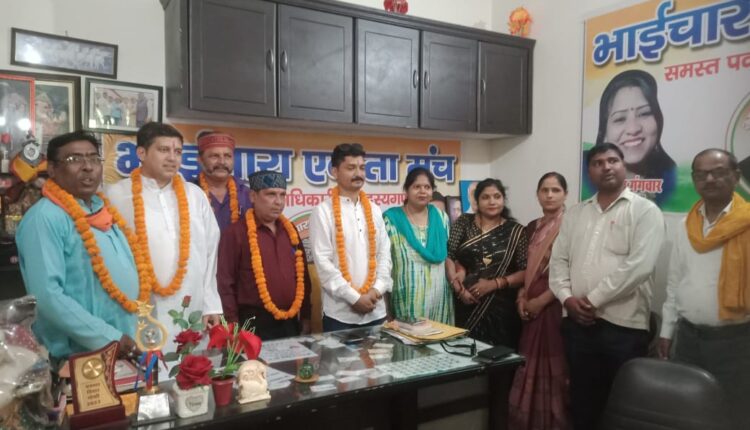 रुद्रपुर। राष्ट्रीय रीजनल पार्टी उत्तराखंड के प्रदेश अध्यक्ष सहित तमाम पदाधिकारी भाईचारा एकता मंच के कार्यालय पहुंचे। जहां भाईचारा एकता मंच के पदाधिकारियो ने फूल माला पहनकर उनका स्वागत किया तथा बाद में चुनाव पर चर्चा हुई पार्टी के प्रदेश अध्यक्ष राजेंद्र पंत ने कहा कि वह उधम सिंह नगर की सभी नगर निकाय, नगर निगम का चुनाव भाईचारा एकता मंच के साथ मिलकर लड़ना चाहते हैं तथा भाईचारा एकता मंच द्वारा चयनित किए गए प्रत्याशियों को चुनाव लड़ाने के इच्छुक हैं।