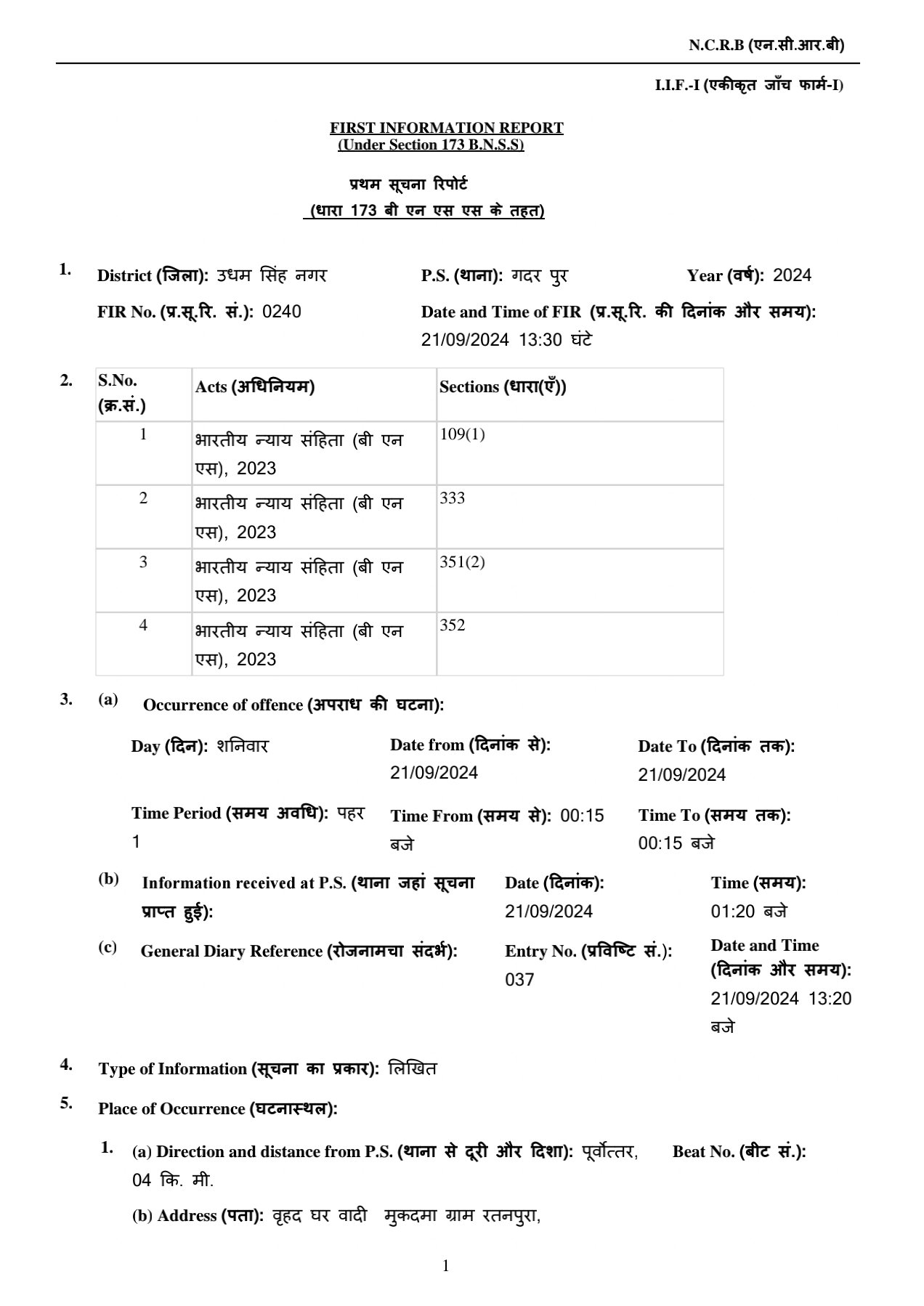 गदरपुर थाना क्षेत्र के अंतर्गत स्थित ग्राम रतनपुरा में शनिवार रात्रि हुई फायरिंग के मामले में पीड़ित की तहरीर पर पुलिस द्वारा नामजद आरोपी के विरुद्ध एफआईआर दर्ज की गई है। फॉरेंसिक टीम द्वारा भी मौके की जांच कर साक्ष्य संकलित किया गया है। घटना की प्रारंभिक जांच में आरोपी द्वारा लाइसेंसी हथियारों का प्रयोग किए जाने की बात सामने आई है। आरोपी सिमरजीत सिंह उर्फ लक्की के नाम से दो शस्त्र लाइसेंस है जिनके निरस्तीकरण के संबंध में पुलिस द्वारा कार्रवाई किए जाने की जानकारी मिली है।