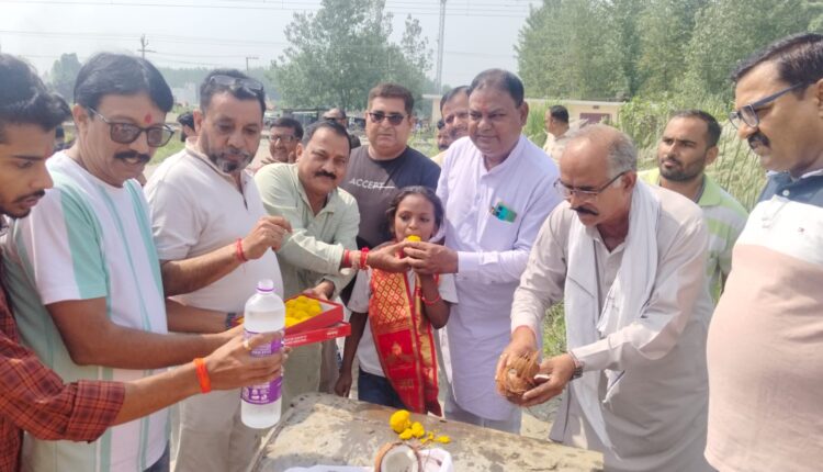 Rudrapur: The long-awaited construction of the Chhatarpur Omaxe Railway underpass commenced today after receiving approval from the district administration. The inaugural ceremony was led by former Mayor Rampal Singh, ex-BJP Kisan Morcha State President Anil Chauhan, and Thakur Jagdish Singh, with the underpass work being symbolically initiated by young Nandani, who broke a coconut to mark the occasion. Sweets were distributed to celebrate this significant development.