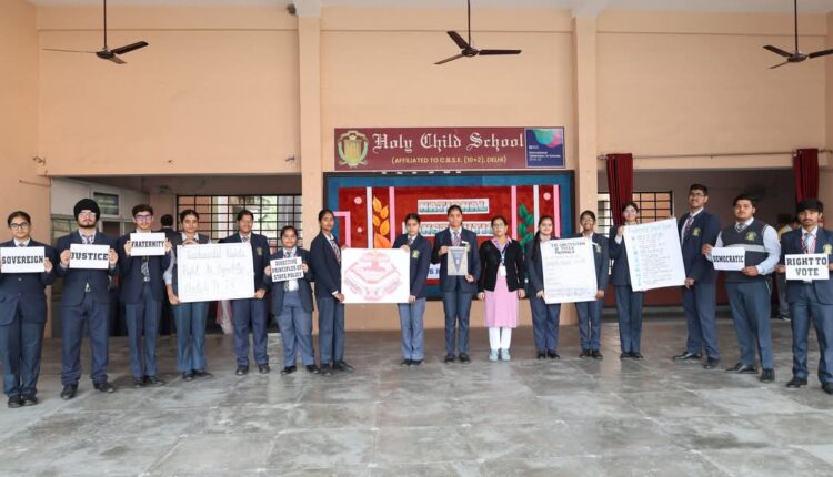 Bilaspur– Holy Child School celebrated National Constitution Day with enthusiasm and a deep sense of patriotism. The event, organized by the Class 11 Humanities students, highlighted the importance of the Indian Constitution and its relevance in daily life.