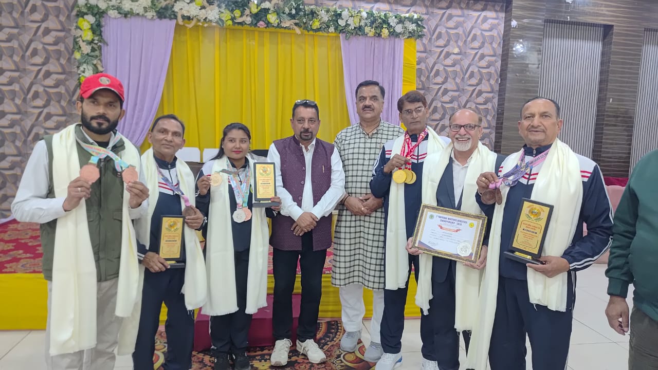 रुद्रपुर। नजारा फार्म हाउस एंड रेस्टोरेंट में आयोजित भव्य सम्मान समारोह में मास्टर्स एथलेटिक्स के राष्ट्रीय स्तर के पदक विजेता खिलाड़ियों को सम्मानित किया गया। इस कार्यक्रम का उद्देश्य खिलाड़ियों की उपलब्धियों को मान्यता देना और उन्हें भविष्य के लिए प्रेरित करना रहा।