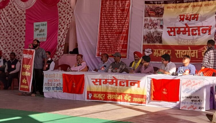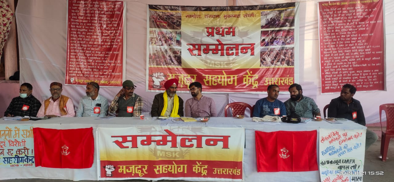 रुद्रपुर में मज़दूर सहयोग केंद्र का पहला सम्मेलन रविवार को संपन्न हुआ। सम्मेलन में मज़दूर विरोधी श्रम संहिताओं को वापस लेने, सरकारी सार्वजनिक संम्पत्तियो को बेचना बन्द करने, जनविरोधी कृषि क़ानूनों को वापस लेने की घोषणा के अनुपालन सुनिश्चित कर किसान संकट का मुकम्मल समाधान करने, मज़दूर नेताओं, राजनीतीक कार्यकर्ताओं का दमन बन्द करने, फर्जी आरोपों में बंद मज़दूरों व नेताओं की रिहाई आदि का प्रस्ताव पारित किया।
