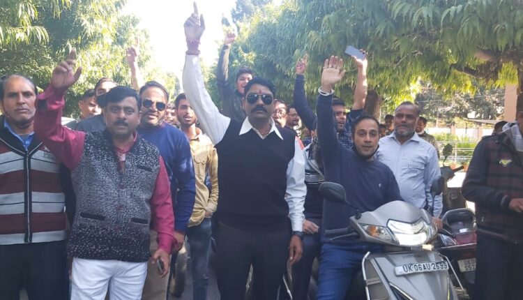 भाजपा नेता गिरीश चतुर्वेदी के नेतृत्व में प्रदर्शन के दौरान दुकानदारों में किराया वृद्धि को गलत बताते हुये इसे वापिस लिये जाने की मांग की।