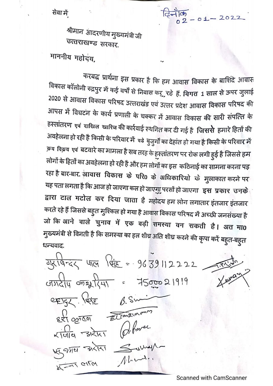 ऊधमसिंह नगर : रुद्रपुर आवास विकास कॉलोनीवासियों द्वारा सीएम को ज्ञापन भेज भवनों की रजिस्ट्री खुलवाने की मांग।