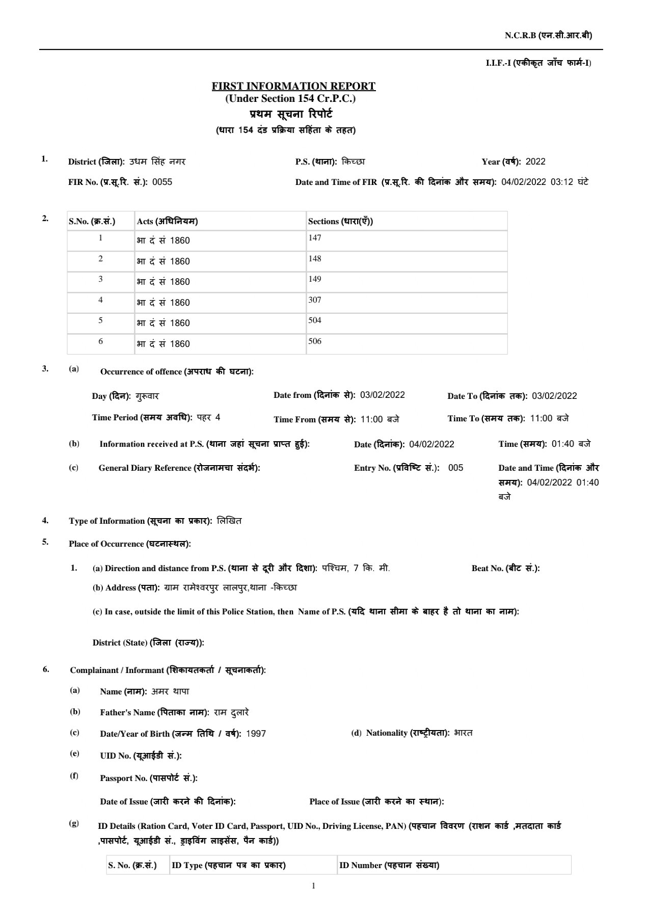 अमर का आरोप है की सायं काल बिन्दर अपने साथियों के साथ उसके घर आ धमका और मारपीट की। जब आस-पड़ोस के लोग उसे बचाने आए तो हमलावरों ने उन्हें भी मारा और धमकी देते हुए चले गए। अमर का कहना है जब वह ग्रामीणों के साथ मामले की रिपोर्ट दर्ज कराने लालपुर पुलिस चौकी जाने लगा तो रामेश्वरपुर मोड़ के पास 3 कारों में सवार होकर बिन्दर अपने जीजा सुखविंदर, करन पुत्र सुखविंदर, मोनू खान, अंकुर गुंबर, सनी व अन्य साथियों के साथ आ पहुंचे और उन्हें घेरकर लाठी-डंडों व लोहे की राॅड से हमला कर दिया।