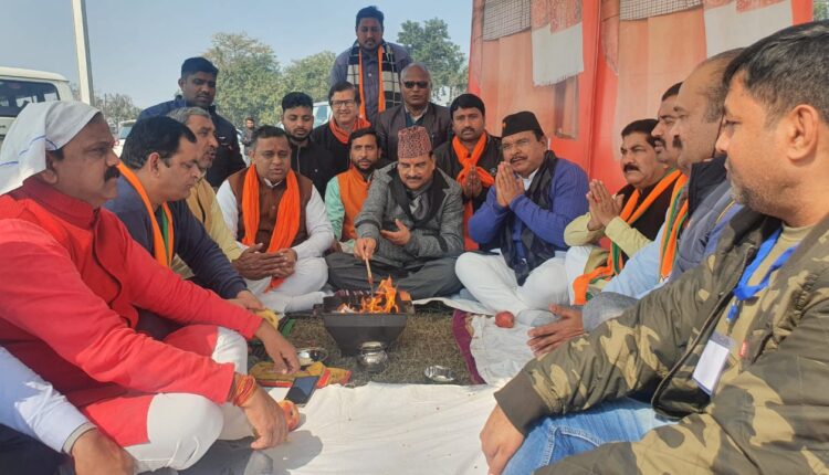 रूद्रपुर। प्रधानमंत्री नरेंद्र मोदी की कल होने जा रही महारैली को निविघ्न संपन्न करने और रैली की सफलता के लिए मोदी ग्राउण्ड में भूमि पूजन और हवन यज्ञ किया गया। साथ बूथ स्तर पर भी कार्यकर्ताओं ने हवन यज्ञ किये। मोदी ग्राउण्ड में हवन यज्ञ का आयोजन केंद्रीय रक्षा राज्य मंत्री अजय भट्ट की मौजूदगी में किया गया।