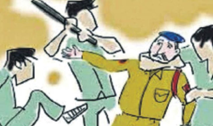 आरोप है कि लोगों को काफी समझाने बुझाने का प्रयास किया गया परन्तु नहीं माने तथा मारपीट करने पर उतारू हो गये। पुलिस का आरोप है इसी बीच भीड़ में से कानि. दिनेश सिंह व संजीव कुमार का गिरेबान तपन पाल व अन्य लोगों ने पकड़ लिया जिस पर उच्चाधिकारीगणों को मौके से ही सूचना दी गयी। कुछ समय बाद ही थाने से पुलिस फोर्स मौके पर आ गया। पुलिस ने तपन पाल को मौके पर पकड़ लिया। पुलिस फोर्स देख लोगों में भगदड़ मच गयी जो तितर बितर होकर इधर उधर भाग गये ।