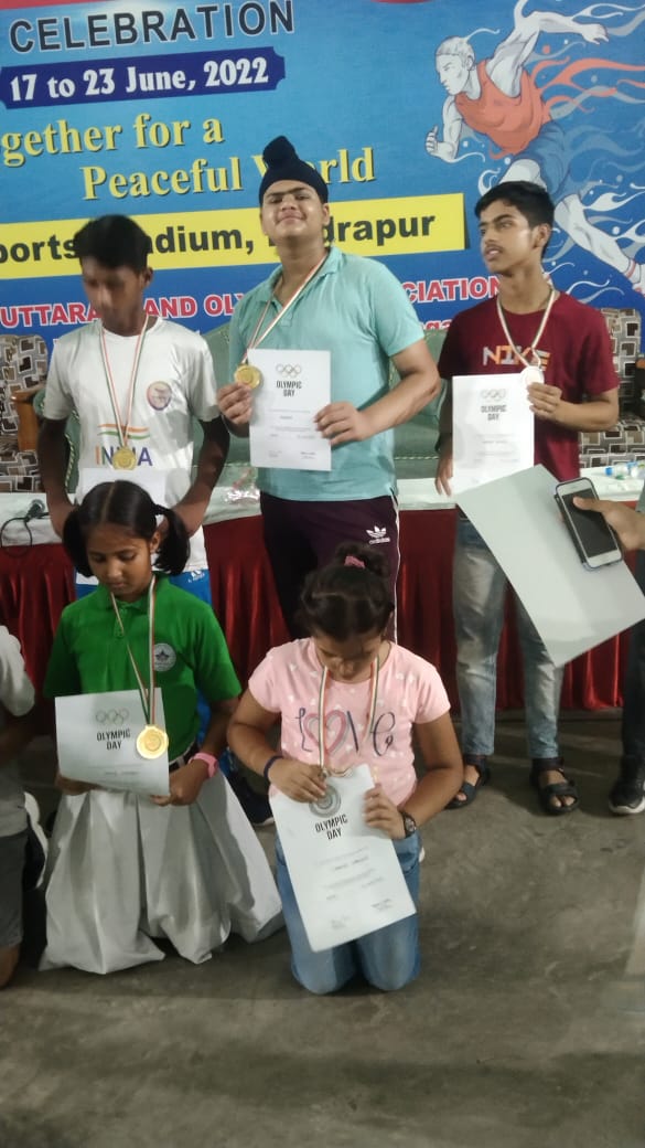 रुद्रपुर। जिला न्यायालय रुद्रपुर के वरिष्ठ अधिवक्ता परमजीत सिंह के पौत्र एवं अधिवक्ता गुरदीप सिंह के सुपुत्र दिवअगम सिंह द्वारा उत्तराखंड ओलंपिक एसोसिएशन की ओर से 17 जून से 23 जून 2022 तक रुद्रपुर में आयोजित ओलंपिक स्पोर्ट्स वीक में मार्शल आर्ट में गोल्ड मेडल जीता है।