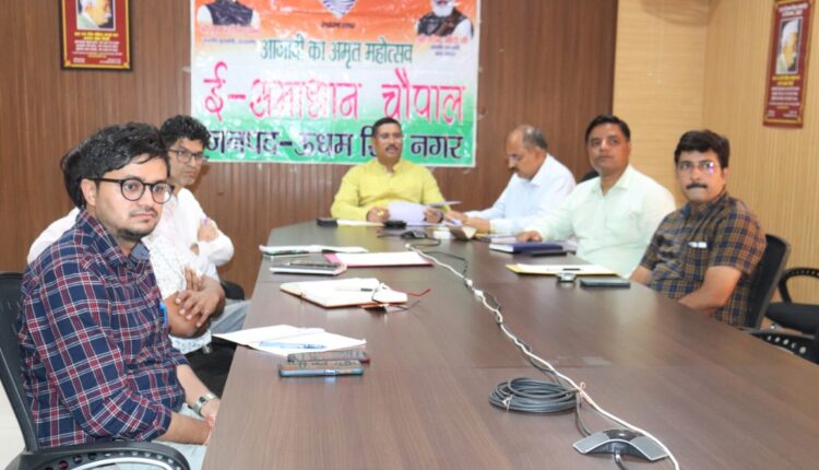 रुद्रपुर। जन समस्याओं के निस्तारण हेतु बुधवार को जिलाधिकारी युगल किशोर पन्त ने जिला कार्यालय के सभागार से एक घण्टे 26 मिनट तक चली ई-सामाधन चौपाल के माध्यम से तहसील काशीपुर के गढ़नेगी गांव की समस्याएं सुनी। उन्होंने सभी फरियादियों की समस्याओं को सुनने के साथ ही क्षेत्रीय कर्मचारियों से समस्याओं के बारे में ली जानकारी।