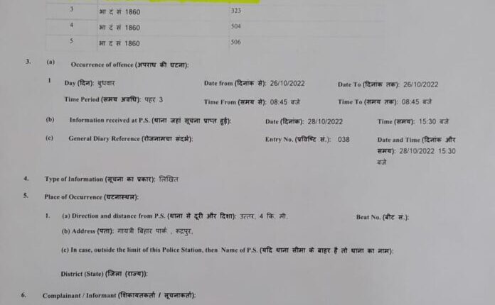 रूद्रपुर। बीते 26 अक्टूबर को ग्राम किरतपुर स्थित साईं विहार कॉलोनी के पार्क में विकास नाम के एक व्यक्ति के साथ मारपीट करने के मामले को लेकर रुद्रपुर कोतवाली पुलिस ने ग्राम किरतपुर के पूर्व प्रधान पति राजेश पासवान, सन्नी यादव, श्रवन गुप्ता, सुरेश सिंह, हरीश, सौरभ यादव और गौरव यादव के खिलाफ बलवा व मारपीट सहित आईपीसी की 5 धाराओं में मुकदमा दर्ज कर लिया है।